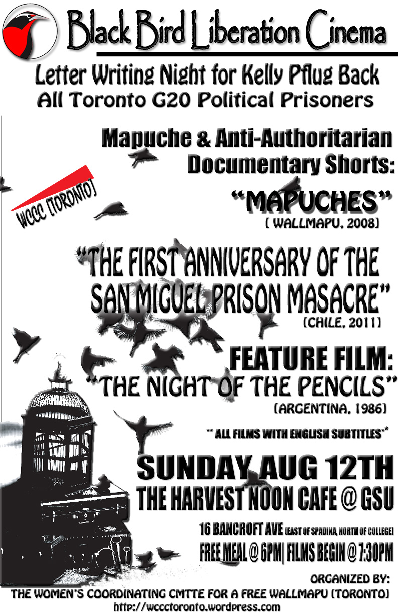 Black Bird Liberation Cinema| Letter Writing Night for Kelly Pflug Back & All G20 Toronto Political Prisoners