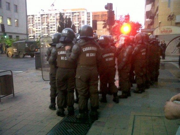 Nine people were arrested, among them members of the Support Network of Communities in Struggle, Mapuche youth centres, and high school youth. Some even bled from the police beatings, beings taken to the Lomas Verdes Police Division.
