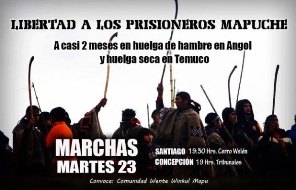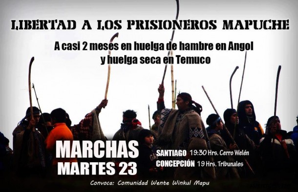 “Marches in Santiago and Concepcion have been organized and it is necessary that all the people go out to protest once again to demonstrate that the prisoners are not alone,” stated Daniel Melinao, calling for manifestations programmed for today Tuesday. Moreover, he called out to people in other cities and other countries to organize any form of protest, since these are decisive days for the difficult situation of the youth in prison.