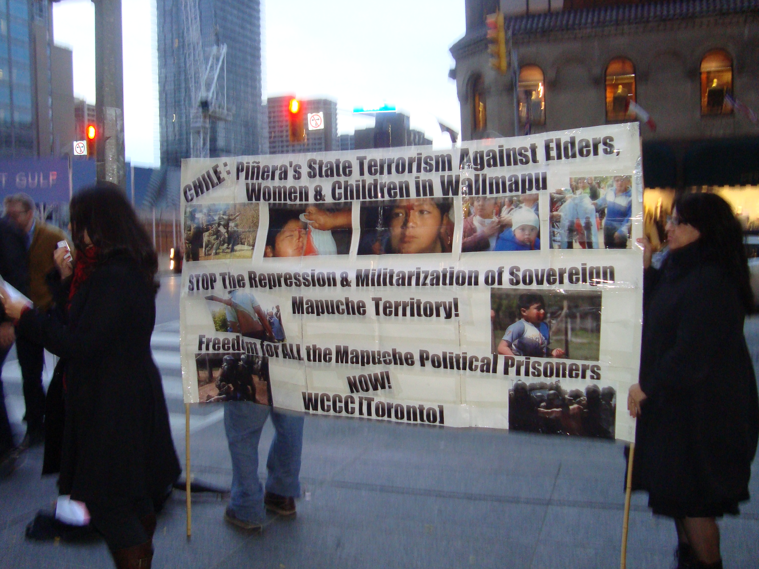 La WCCC [Toronto] repudia públicamente la militarización, la criminalización, y la represión salvaje y despiadada que se está dando en el Wallmapu, contra nuestras comunidades por parte del gobierno racista de Sebastián Piñera y su policía militarizada.