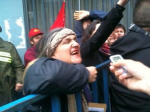 Monica Quezada, the mother of slain Mapuche Warrior, Matias Catrileo, who was murdered by police in January of 2008 in Vilcún, ended up with a broken denture during one of Bachelet’s Presidential campaign appearances earlier today.