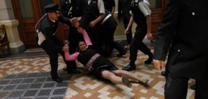 The close to 20 protesters were removed by Prison Guards and handed over to Police that waited outside the courtroom, to then be transferred to Santiago’s Third Police Division.