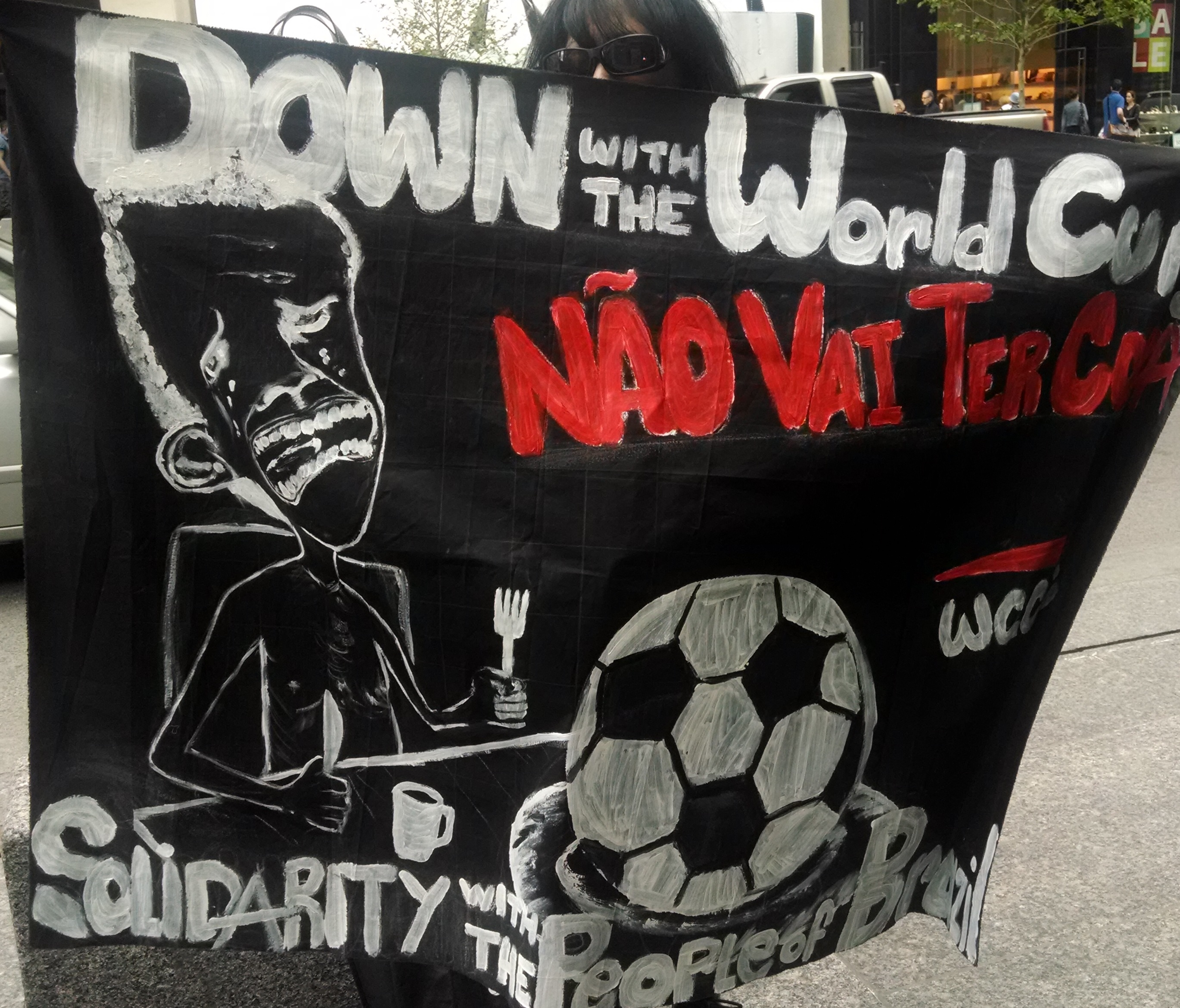 These demands have been met by fierce State repression, enacting Antiterrorism laws for protesters, killing at least one, in which 200,000 militarized police officers have been dispatched throughout the proceedings of World Cup. Despite the militarization, the youth continue to show their strength on the streets, with outpouring of protests and riots in Thursday’s opening. As many youth on the ground would say, “Capital is worldwide, and it will come crashing down worldwide. Down with the World Cup!” We send our deepest sense of solidarity to the people on the front lines protesting against the plunder, displacement and repression caused by the World Cup and imposed by the Brazilian State. While there is misery, there will be rebellion.