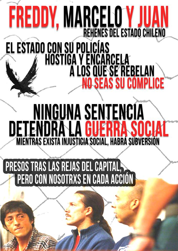 Today the democratic inquisition of Justice to the tune of its media carrion will publically celebrate the announcement of their sentences, in this way pretending to perpetuate our lives in prison. In the presence of this confrontational war with Power, it is important to mention that we are part of a greater whole who struggle. We are the palpable result of a conscience that will not bend and will resist to live under the designated subjugation of the Capital god, of domination and its entire authoritarian framework that seeks to annul our dreams, desires and necessities of Total Liberation.