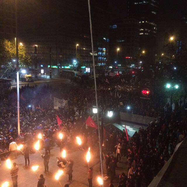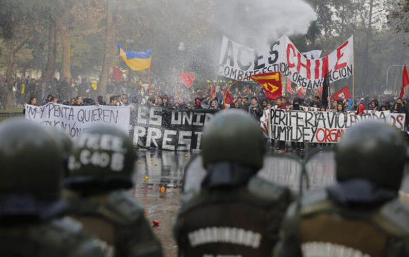 These incidents occurred around the seat of the Legislature, in the center of Valparaiso, where a group the Carabineros (militarized police) had set up barricades to block the advance of the protest. People tried to remove the barriers and police began with baton charges, water cannons and tear-gas to disperse the protesters who responded by throwing stones and objects at the police Special Forces.