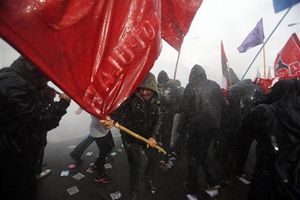 Police once again used water cannons as well as tear gas on May 28th as masked protesters attacked them with sticks and stones during an unauthorized march through the center of the capital.